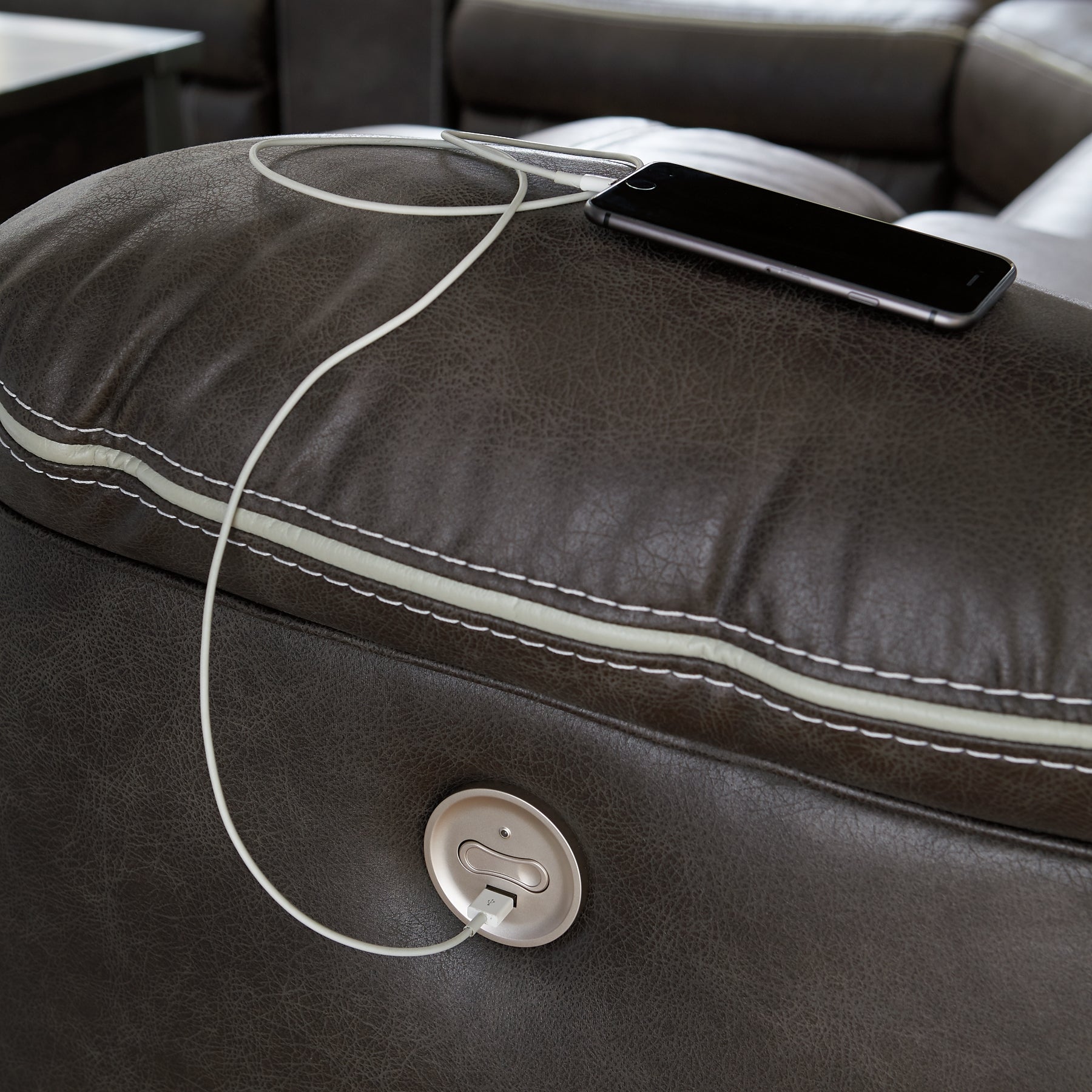 You could play it safe. Or you could choose to stand out in the crowd with this brilliantly styled sectional with power. Ultra cool, ultra contemporary and ultra comfortable, this fashion-forward sectional sports a fabulous faux leather enhanced with contrasting stitching that’s right on point. Rest assured, sumptuous pillow top armrests and sleek channel cushioning feel every bit as good as they look.