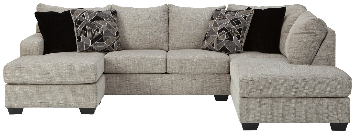 Details | Includes 2 pieces: left-arm facing sofa chaise and right-arm facing corner chaise, "Left-arm" and "right-arm" describe the position of the arm when you face the piece, Corner-blocked frame, Attached back and loose seat cushions, High-quality foam cushions wrapped in poly fiber, Polyester upholstery, Throw pillows included, Exposed feet with faux wood finish, Platform foundation system resists sagging 3x better than spring system after 20,000 testing cycles by providing more even support, Smooth platform foundation maintains tight, wrinkle-free look without dips or sags that can occur over time with sinuous spring foundations | |